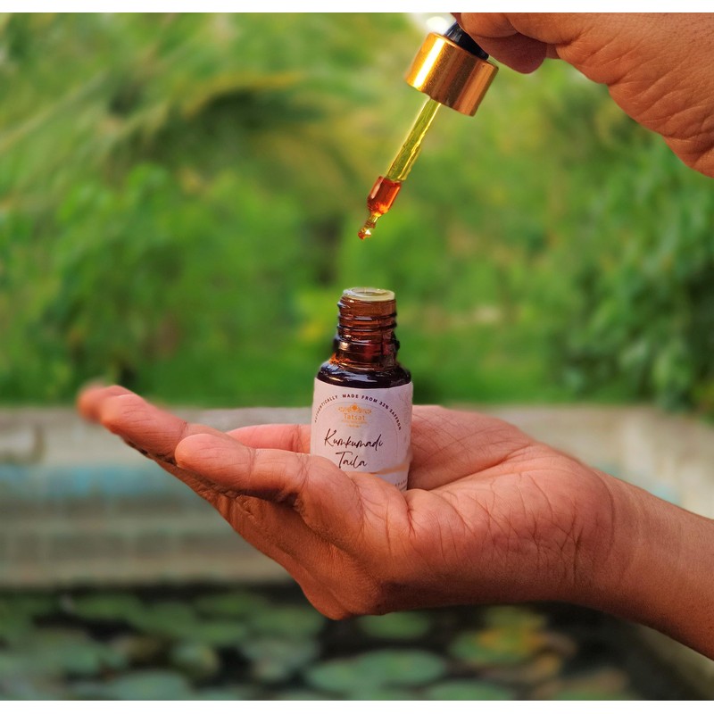 - Prepared with such a devotion to the time tested ayurvedic wisdom, All the 23 Ingredients of kumkumadi taila are fresh, pure, and filled with great aura starting From base oil which is the BULL DRIVEN SESAME OIL