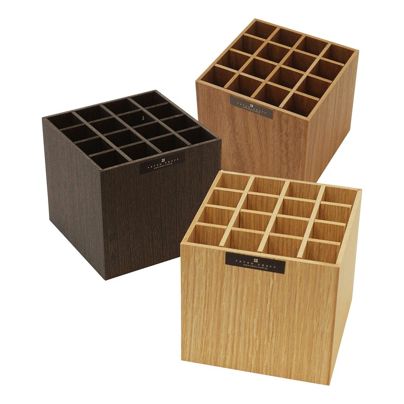 - You can relax in your mood with this spacious desk. Cube style pen stand fits compactly. Thoroughly store pens that are messy on your desk. It can hold up to 25 pens or pencils if the space is only 9cm square. ● 2 squares to choose according to your writing instrument. The 25 squares can be stored in a narrow center of objects such as ballpoint pens and mechanical pens. We recommend 16 squares for slightly thicker items such as Himacky permanent pens and makeup brushes. Stylish wood grain pattern that feels gentle and warm. Perfect for any desk or office and perfect for decorating your room. Comes in a box to prevent damage to the product