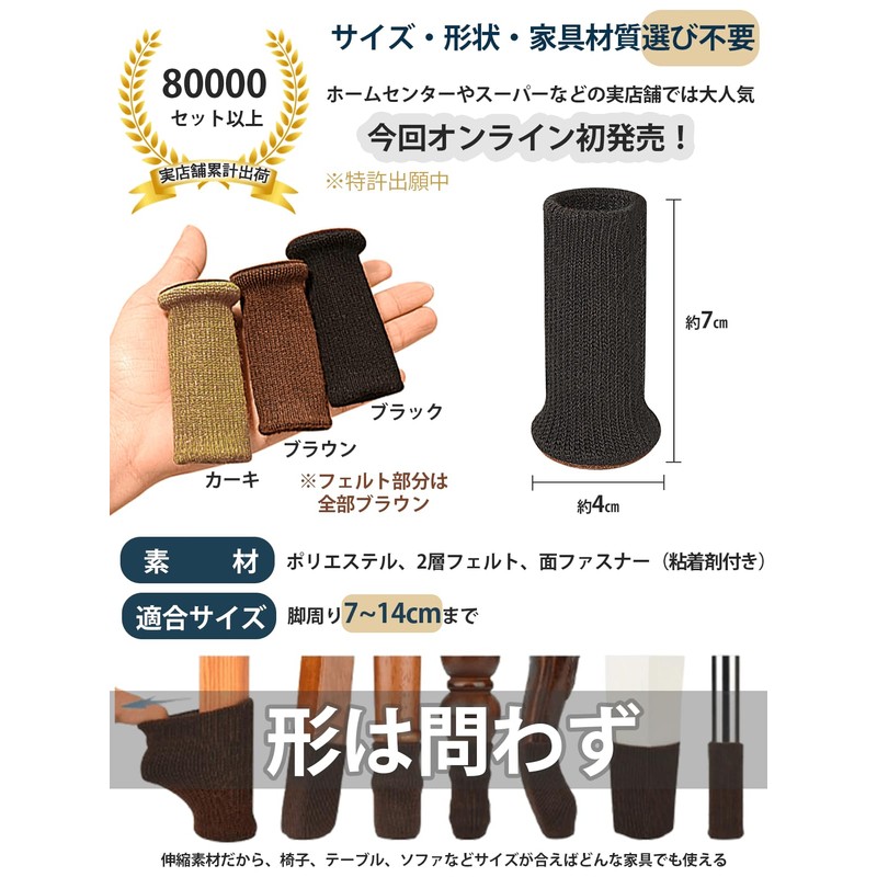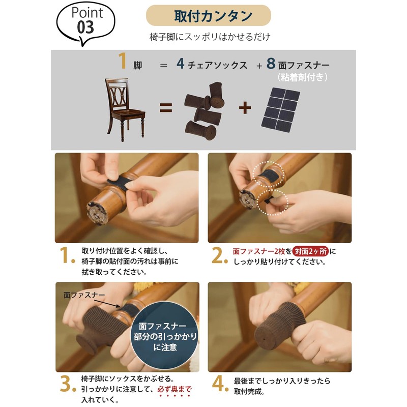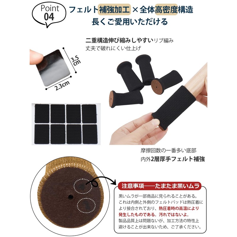 - Solves all the problems common with socks chair leg covers. These chair socks are cute but "Mendo Kusai since they slip quickly" started from our customers from a project that really stays in place - socks x Velcro type. It will not come off again even if it is firmly fixed. Compared to traditional silicone inner fabric types, it is extremely difficult to fall off, so you can pull it at an angle. Over 80,000 sets of cumulative shipments in retail stores such as hardware stores and supermarkets, this is the first online release!