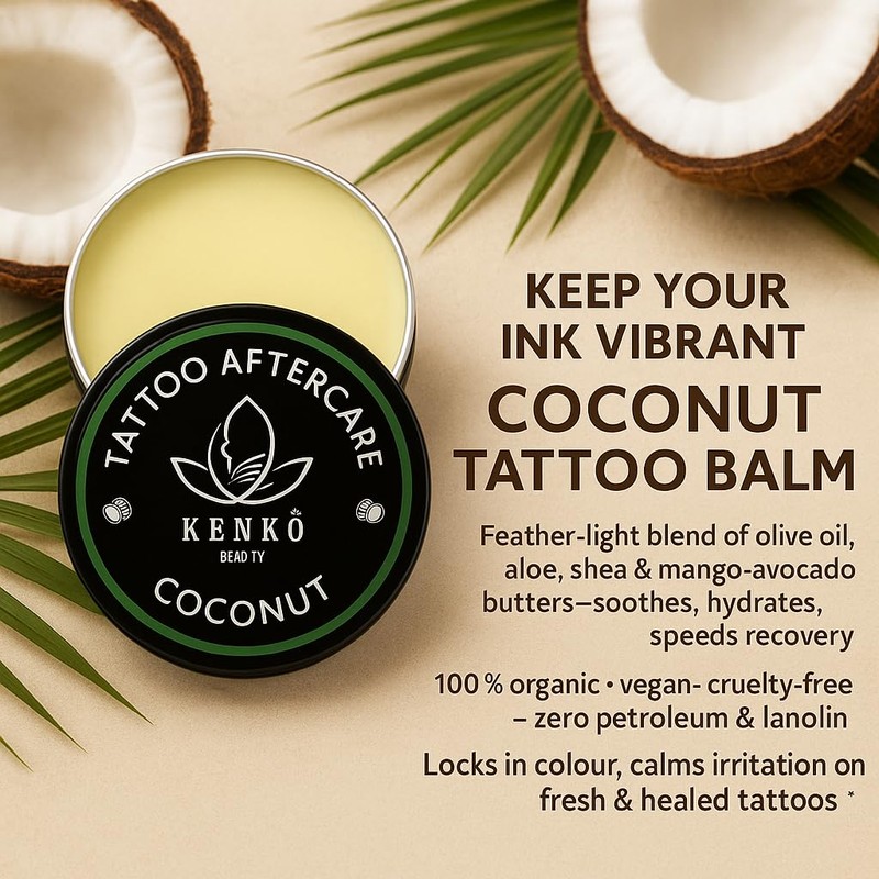 - Revitalise Your Tattoo: Kenko Beauty's tattoo aftercare cream elevates your tattoo’s vibrancy and vitality. With a luxurious blend of Jojoba Oil, Aloe Vera Butter, Mango Butter, and Palmarosa Oil, your skin remains deeply moisturised; this advanced formula ensures a richer, more vibrant appearance that stands the test of time. Experience an all-natural commitment to your tattoo's brilliance and longevity with our top-notch aftercare solution.