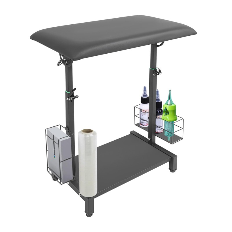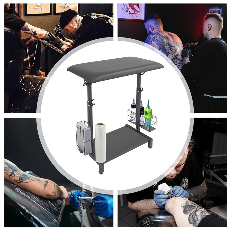 Tattoo Arm Rest XL Oversized Tattoo Armrest Stand with Storage Baskets,Wide Base,Pigments Rack Adjustable Height & Angle Professional Tattoo Supplies for Studio Salons (E)