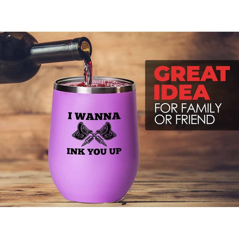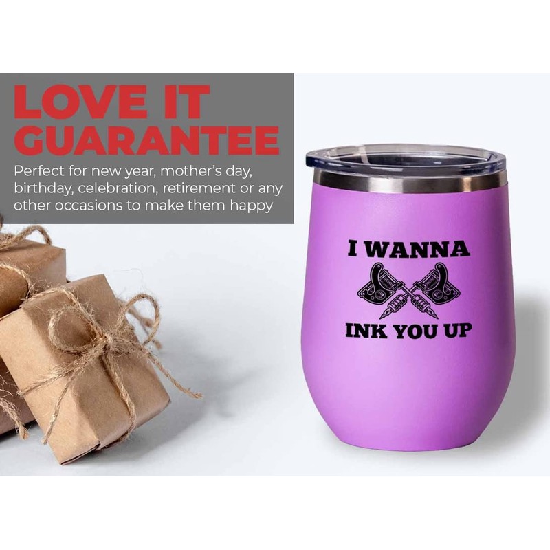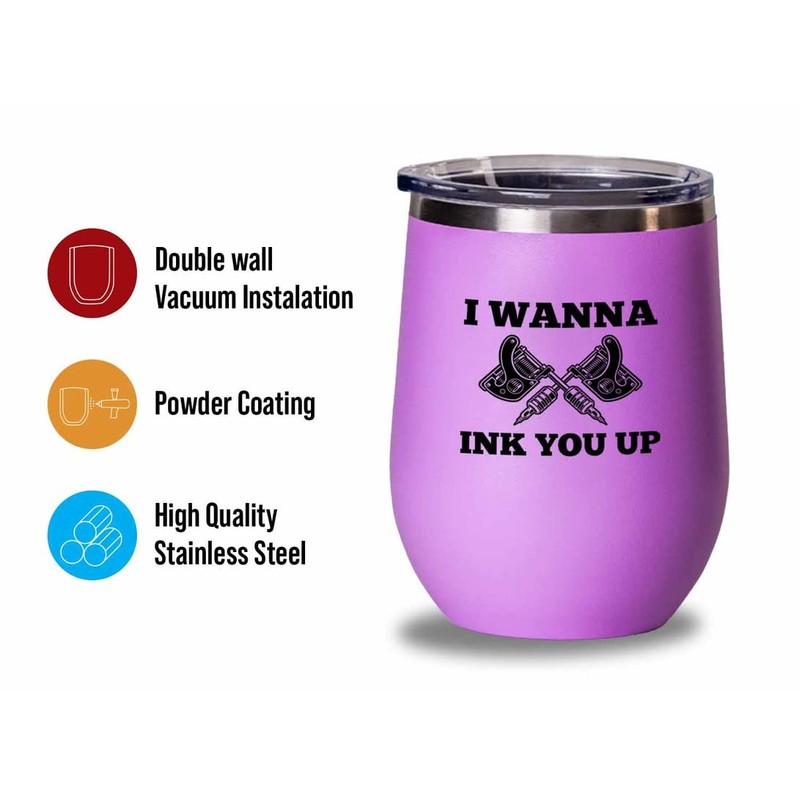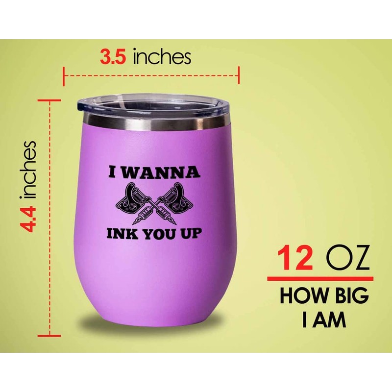 Tattoo Artist Pink Wine Tumbler 12oz - I wanna Ink You Up - Tattooist Gift Tattooing Tattoo Shop Decor Tattooer Inker Studio Designer Tattoo Fund