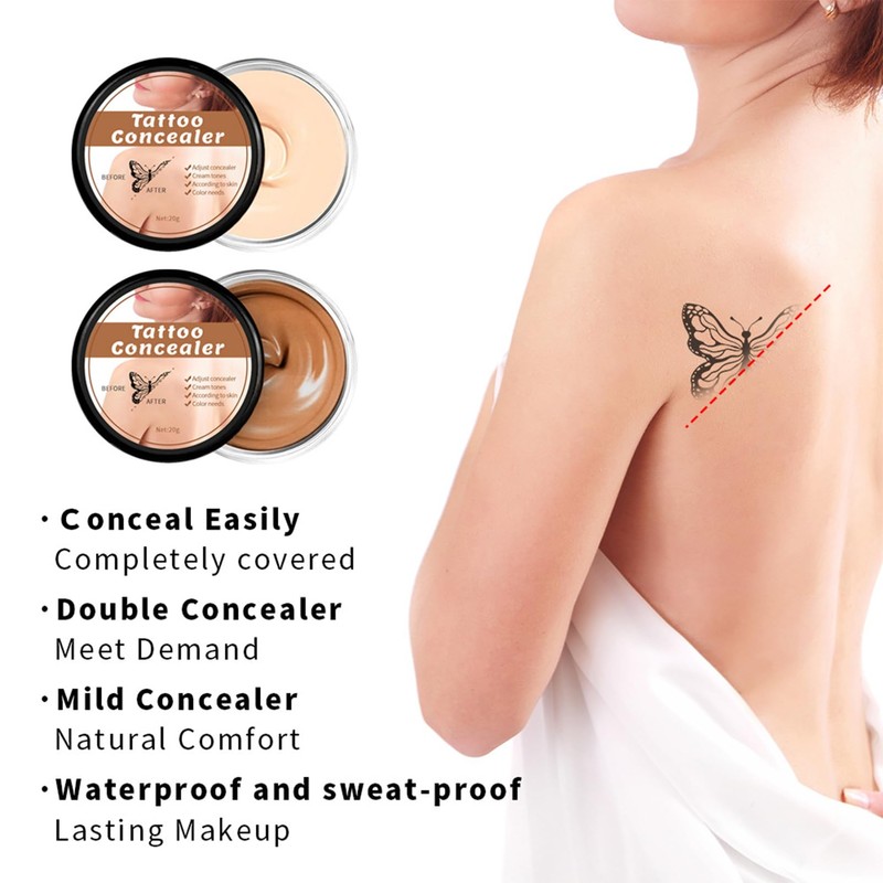 - Perfect Concealer: 2*30g Tattoo Concealer has a fine, light texture and good spreadability, which will not bring any burden to the skin. With just a thin layer, it can perfectly cover all kinds of skin imperfections and keep your skin tone natural. Suitable for important occasions such as dating, prom, dinner parties, travelling, etc. It is the perfect touch-up for tattoos, scars and blemishes.