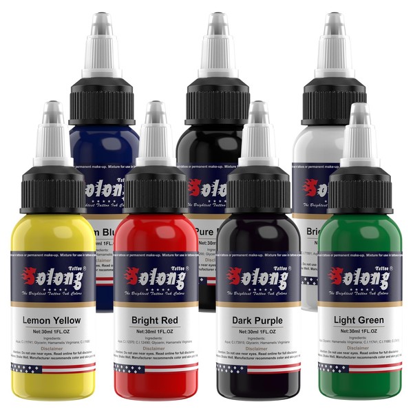 Tattoo Ink,Solong Tattoo Ink Color Set Easy to Mix Professional Tattoo Ink Set 1 OZ 7 Basic Pigment Kit Colors Original TI302-30-7-SL