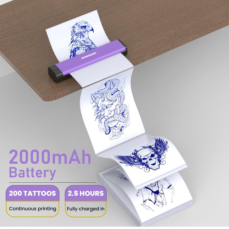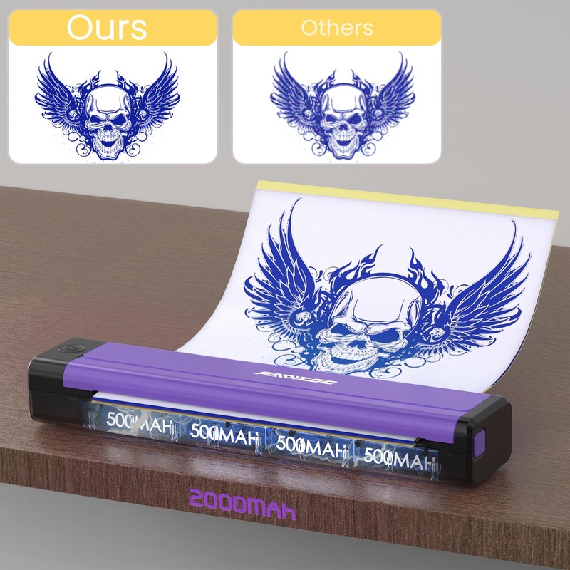 Padieoe Wireless Tattoo Printer: The Future of Tattooing at Your Fingertips  Unlock your artistic potential with the Padieoe Wireless Tattoo Printer, a revolutionary tool that redefines the tattooing experience for both seasoned professionals and aspiring tattooists alike. This innovative tattoo stencil printer combines cutting-edge technology with user-friendly design, ensuring that every tattoo transfer is seamless and precise. With a compact size of 11.5*2.6*1.8 inches and a lightweight build, this portable tattoo printer is perfect for studio use or on-the-go applications.  Equipped with a powerful 2000mAh rechargeable battery, the Padieoe printer allows for multiple tattoo printing sessions without interruption, making it an essential addition to any tattooist's toolkit. The included 10pcs Transfer Paper enables you to create stunning designs effortlessly, whether you're working on intricate pieces or simple stencils.  This wireless tattoo transfer stencil printer is compatible with smartphones, tablets, and PCs, providing high compatibility across various devices. Its Bluetooth tattoo stencil printer functionality supports both Android and iOS systems, making it easy to print directly from your preferred device. Say goodbye to cumbersome wires and hello to the freedom of wireless tattoo printing!