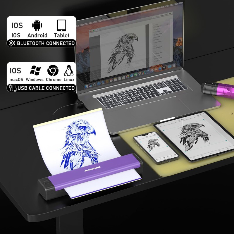 • High Compatibility - Compatible with various devices such as smartphones, tablets, laptops, and desktops; This makes design and printing easier for tattoo enthusiasts and beginners than ever before; It is compatible with various systems, including Android, iOS, Windows, Mac OS, and Chrome OS