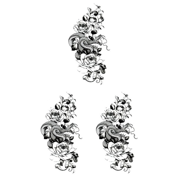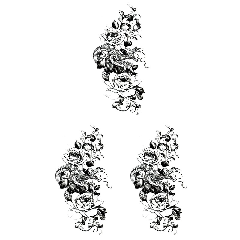 Tattoo Stickers Rose Snake hm1381 Regular Size, Pack of 3