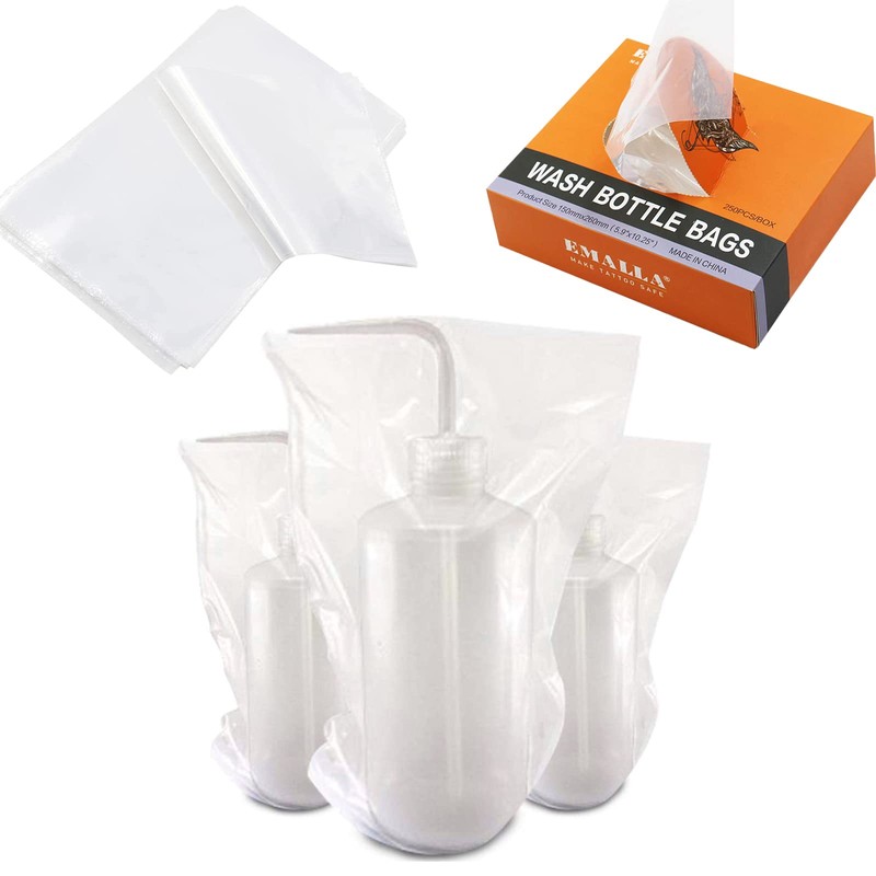 • đź§ŠWHAT YOU GET: A box contains 250pcs wash bottle bags, each tattoo bottle bags measures 10.25 inch long by 5.9 inch wide, generous quantity is enough to use for a long time.