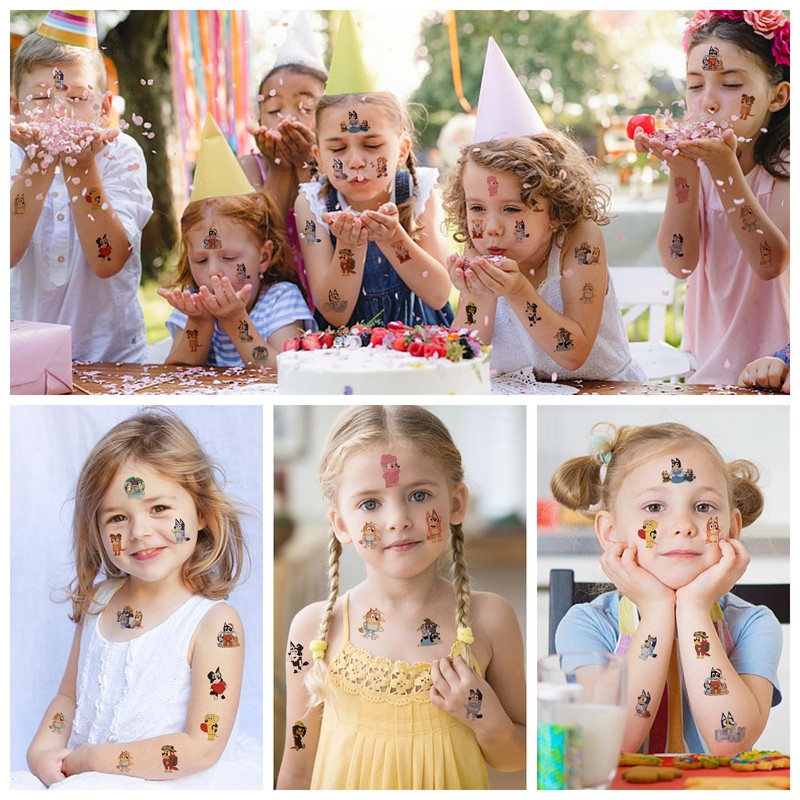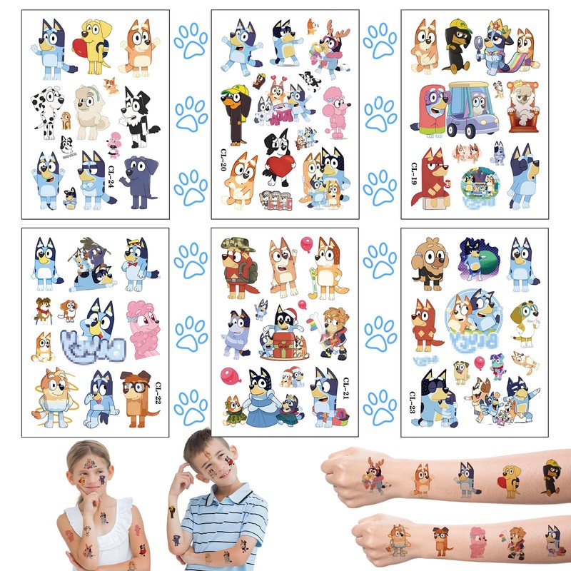 Tattoos for Children, 6 Sheets Blue-y Tattoo, Children's Cartoon Dog, Children's Tattoos, Skin-Friendly, Waterproof, Temporary Children's Tattoos, Birthday Gifts, Party Bags for Girls and Boys