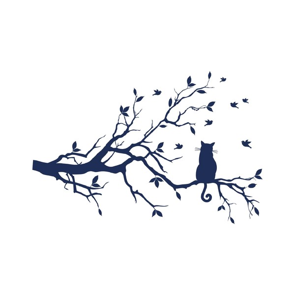 Tattwo.me 2 Week Waterproof Temporary Plant Tattoos - Cat on a Branch - EU Compliance - Vegetable Ink - Tattoo Pad Size: 9 x 9 cm (M0207)