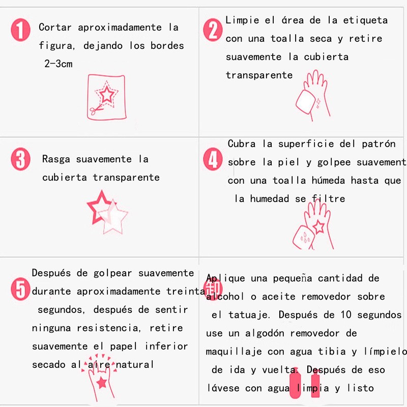 - ⭐💫【FáCil De Usar】:simplemente coloque la etiqueta adhesiva de tatuajes falsos sobre la piel y con una esponja húmeda, sosténgala durante unos 15 segundos, retire el papel y deje que el tatuaje se seque. Se elimina fácilmente con alcohol, aceite de bebé, aceite de coco, aceite de oliva.Si no necesita pegatinas de tatuajes temporales, puede quitar los tatuajes temporales de transferencia para niños frotándolos con las manos después de estar completamente empapados. en agua.