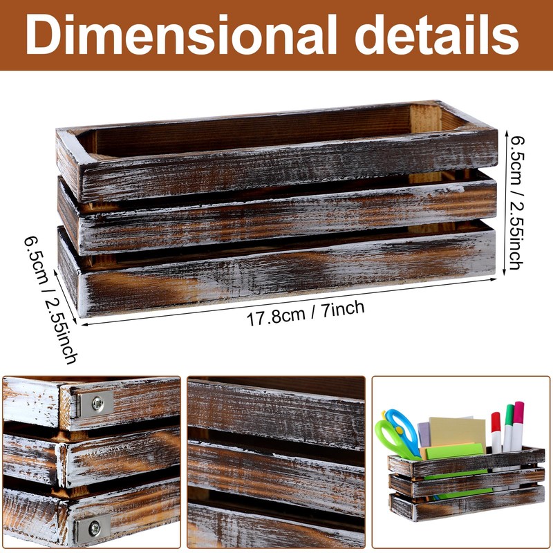- Farmhouse Stylish Design: crate construction and burnt wood finish of wooden makeup organizer provide a subtle rustic accent to tie into home or office decor, magnets on back allow mounting to refrigerators, metal cabinets, desks, or any flat magnetic surface
