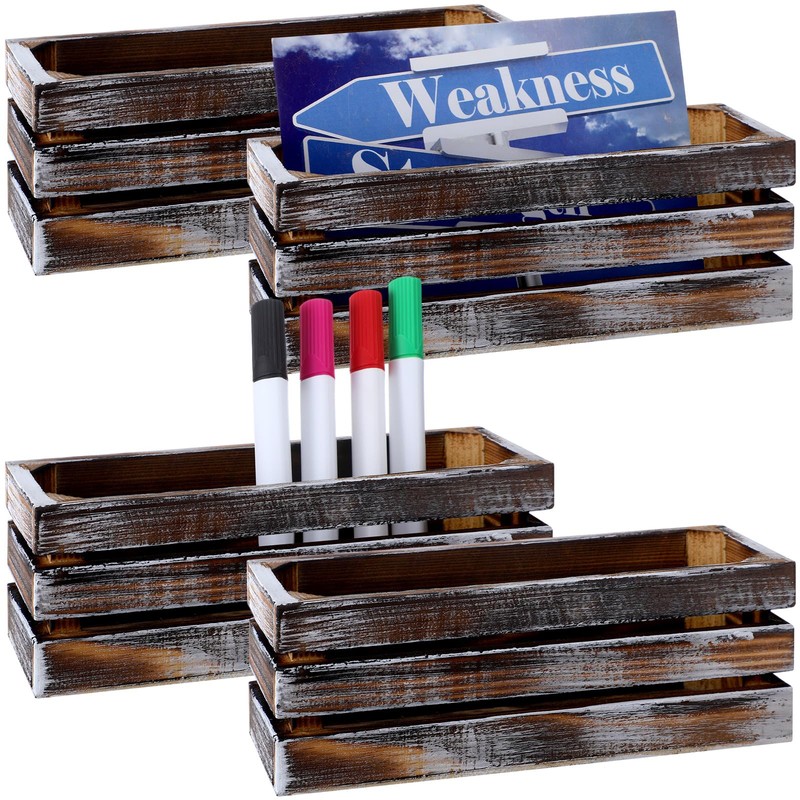 Tatuo 4 Pack Magnetic Wood Whiteboard Marker Holder Burnt Wood Whiteboard Marker Storage Organizer Farmhouse Chalk Holder Crate Style Office Supplies for Whiteboards, Refrigerator (Brown)