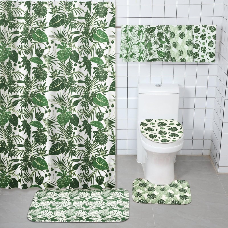 - Boho Green Leaves Design: our tropical leaves shower curtain set, features a distinctive and eye catching boho green leaf design; These delicate patterns will add a fresh, stylish look into your bathroom or toilet