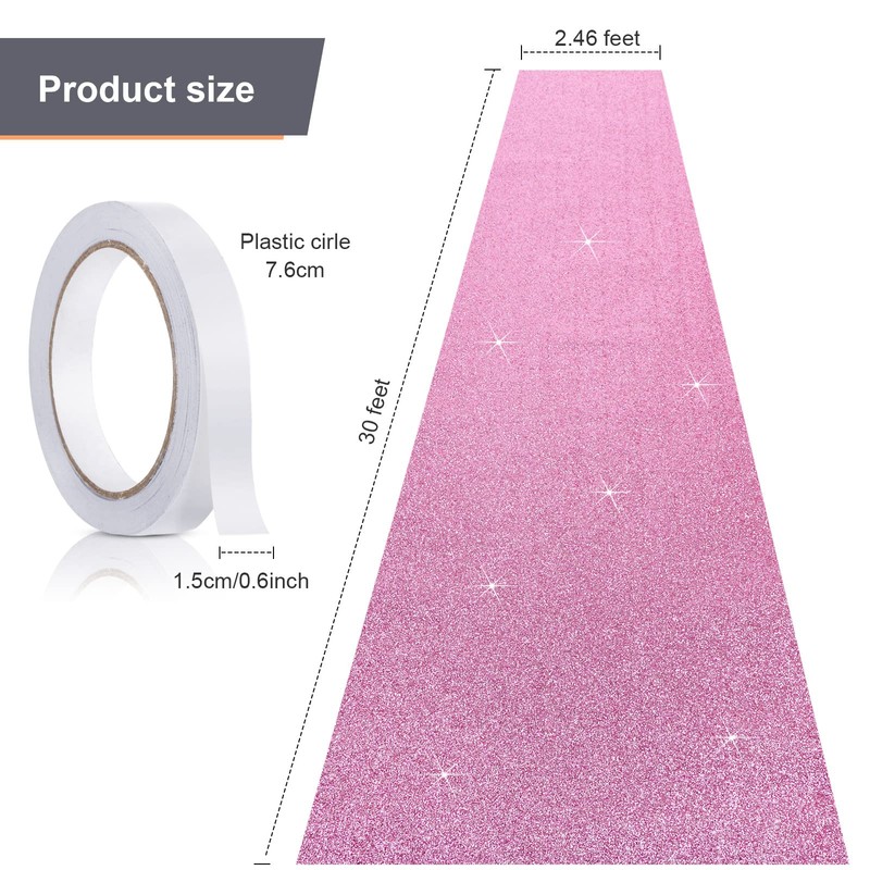 Tatuo Carpet Runner Runway Rug 55 GSM Thickness with Carpet Tape for Wedding Christmas Xmas Thanksgiving Outdoor Accessories, Wedding Party Hallway Rug (Glitter Pink,2.46 x 30 Feet)
