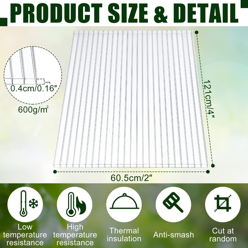 - Sturdy and Thickened: you will receive pieces polycarbonate greenhouse panels, the size is approx. x ft, the thickness of these polycarbonate sheets is about . inch, which is not easy to break