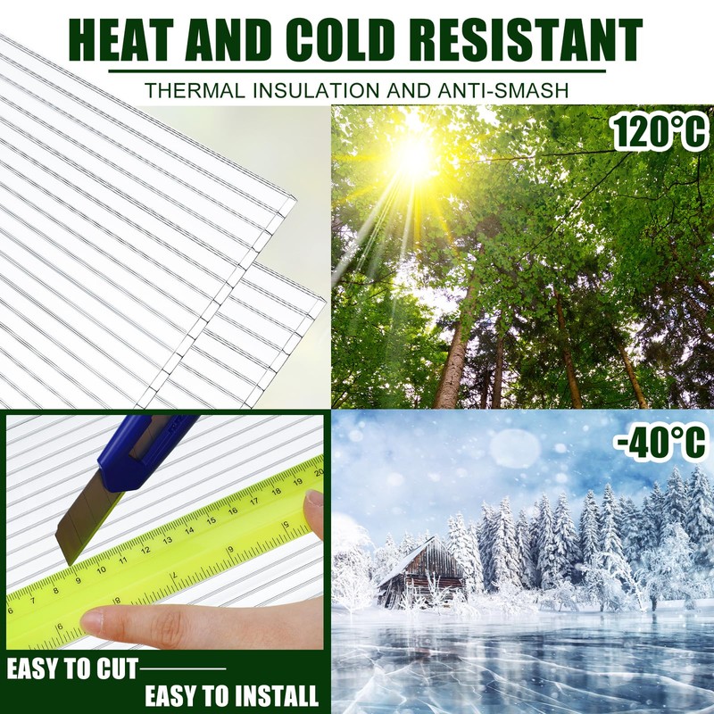 - Easy to Cut: our greenhouse corrugated roofing panels can be cut into the required size, just use a utility knife(not included), be careful not to cut your own fingers when cutting the greenhouse polycarbonate panels pack