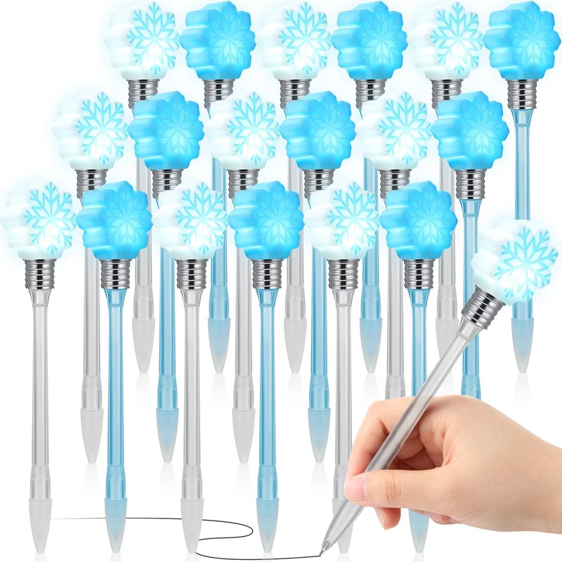 - Eye Catching Light Display: these snowflake top pens feature lights (battery included) that illuminate when writing, shining in white, creating a mesmerizing lighting effect; The unique light display is sure to catch the attention of others, making it an excellent conversation starter at parties or in office