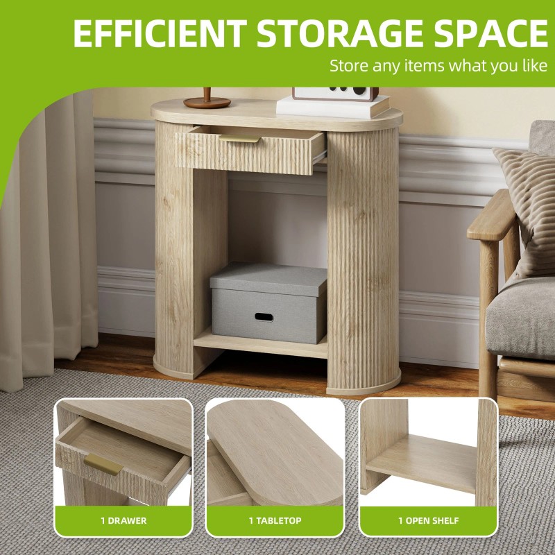 TAUS 31.5" Fluted Console Table with Drawer and Open Storage for Entryway Sofa Side