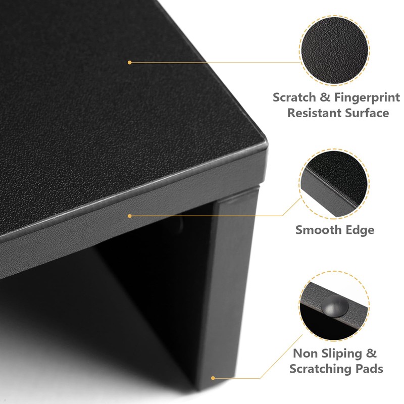 - EASY TO ASSEMBLE: It only takes two minutes to complete the installation. This monitor riser with storage comes with a detailed instruction manual and all necessary components. All parts have their own numbers so that you could find them quickly.