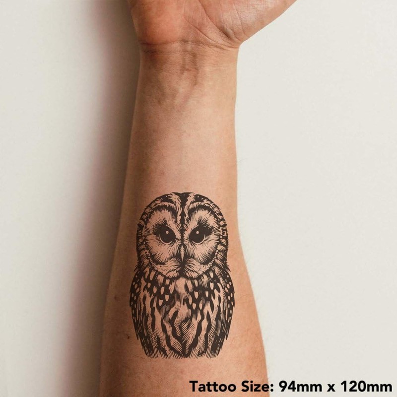 'Tawny Owl' Temporary Tattoo - Water Resistant, Skin-Safe, Non-Toxic Transfer (TO00080233)