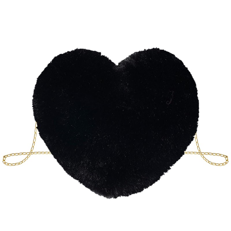 TAXTYHRE Plush Shoulder Bag, Heart Plush Bag, Cute Fluffy Crossbody Bag, Plush Bag for Women and Girls, for Daily Outdoor Travel, Valentine's Day, Birthday Gift, black
