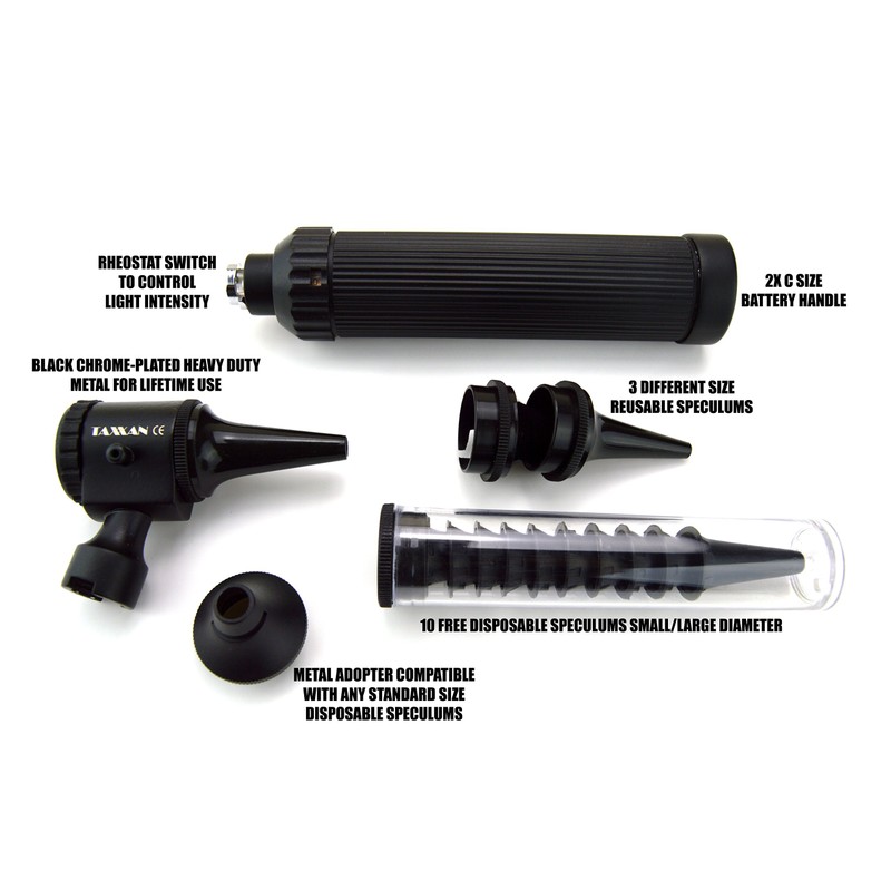TAXXAN Black Otoscope ENT Diagnostic Set with Metal Adapter to USE Standard Disposable Speculum