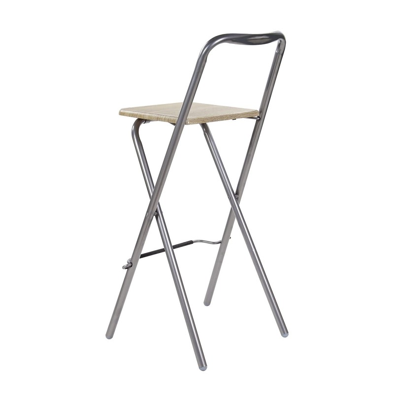 Taylor & Brown Folding Bar Stool Chair Wooden Effect Breakfast Barstool Kitchen Restaurant Seating Silver Frame Foldable Seat Home with Footrest, Natural
