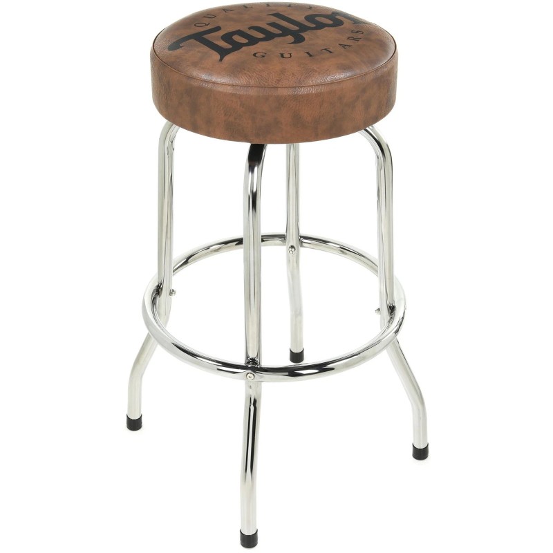 Play your guitar in comfort with the Taylor Barstool. This 30-inch barstool sports a padded swivel seat with a Taylor logo. This comfy barstool is a favorite seat in Sweetwater's guitar showroom. The foot ring lets you rest your foot or raise your leg to get your guitar into your preferred playing position. Add a classy piece of furniture to your playing area with the Taylor Barstool.Taylor Brown Logo Barstool Features: