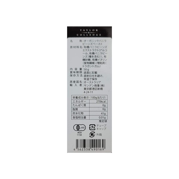 Taylor & Colledge Organic Vanilla Bean Paste (1.8 oz (50 g) x 3 Piece Set