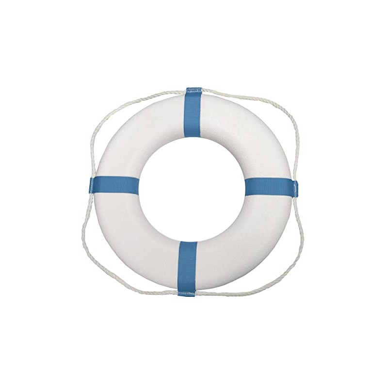 TAYLOR MADE PRODUCTS Decorative Life Ring, White with Blue Stripes, 25" Outer Diameter, Safety Preserver for Decoration on Boat, Deck or Marina, Sewn-in Grab Lines, Waterproof Closed-Cell - 373