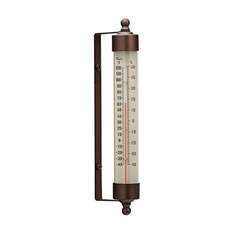 - Part of the Taylor Heritage line of classically styled weather instruments, this thermometer is made of anodized aluminum and glass with a bronze finish.