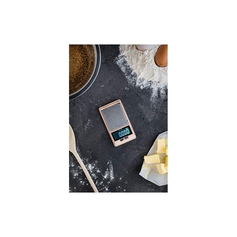 Taylor Pro Precision Kitchen Scales with 0.01 g Accuracy & Tare in Gift Box, Pocket Sized, Plastic/Stainless Steel, Rose Gold, 500 g / 16oz Weighing Capacity