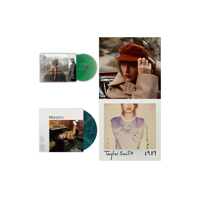 Taylor Swift - Evermore (Translucent Green Vinyl/2LP) & Red (Taylor's Version) (4LP) & Midnights (X) (Jade Green LP Vinyl) & 1989