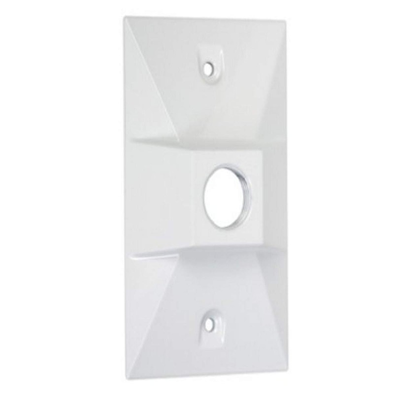 The product type is 1-Gang Weatherproof Cluster Cover, One 1/2 in. Threaded Outlet, White. It is manufactured in China. It is manufactured by TAYMAC.