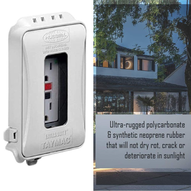 EXTRA DUTY PROTECTION FOR YOUR ELECTRICAL OUTLETS Get maximum toughness and protection from weather hazards with our 1-Gang Weatherproof In-Use Expandable Electrical Outlet Cover. This essential tool for home improvement is EXTRA DUTY rated and UL listed for wet and damp locations so you can maintain safe operation of appliances and devices. Our weatherproof outlet cover uses our UFAST for 16-in-1 custom device configurations. This enables you to mount and protect duplex outlets, switches, round electrical outlets, and GFCI outlets with this preconfigured box. QUALITY PROTECTIVE DEVICES Get the hardiest shielding over the vulnerable points in your electrical system. Our socket cover for outlets is built from ultra-rugged polycarbonate for maximum durability. It's fitted with synthetic neoprene rubber that won't dry rot, crack, or deteriorate in sunlight. The set even includes gasket and mounting hardware for convenience so you don't have to shop around for additional tools and fittings. Our weatherproof enclosure is tested and certified to cULus and NEMA standards. It has a 100% paintable surface and a clear, see-through window that allows for quick and easy inspection without needing to open the unit. QUICK INSTALLATION Set up your outdoor outlet cover in no time at all. Our Quick-Fit keyhole mounting system allows installation in under a minute using either horizontal or vertical mounting. With the proper tools and setup, you can refit all of your outdoor electrical boxes with the necessary weatherproofing to ensure safe and continuous operation. Get your Extra Duty 1-Gang Weatherproof In-Use Expandable Electrical Outlet Covers today and provide the necessary added protection to your electrical fixtures.