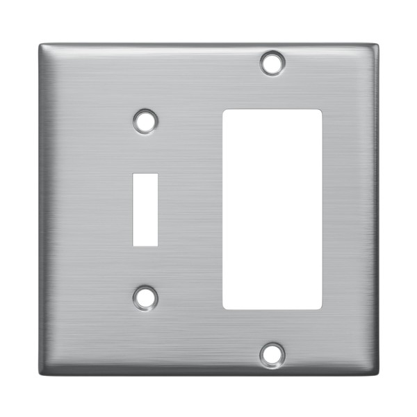 TayMac WSS-TR 2-Gang Stainless Steel Standard Toggle/Decorator Wall Plate WSS-TR, Outlet Cover Wall Plate with Screws, Light Switch Cover Plate for 2 Devices