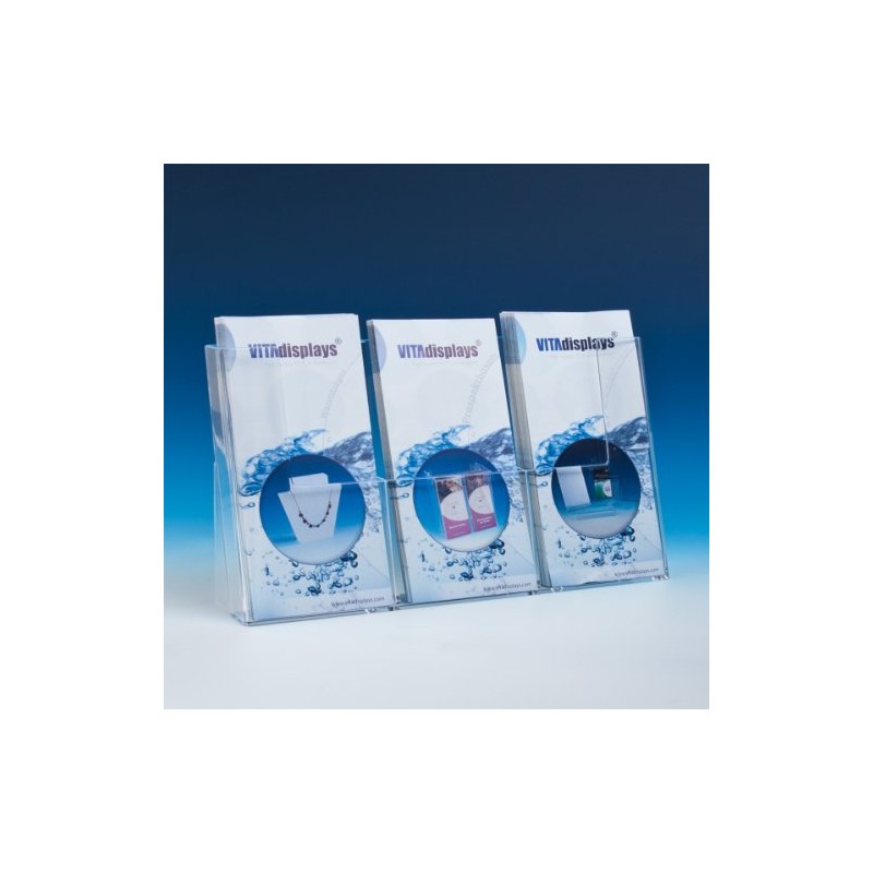 TAYMAR Table Brochure Holder, Flyer Stand with 3 Compartments for DIN Long (DL), Transparent