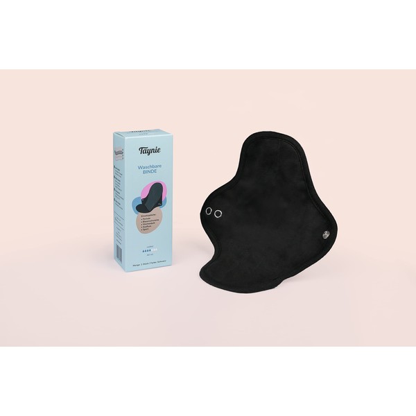 - Wiederverwendbaren Damenbinden - Unsere Taynie waschbare Binde in mittelstark ist hautfreundlich, nachhaltig und absolut praktisch. Die mittelstarke wiederverwendbare Binde ist für eine mittlere Periode geeignet und fasst 40 ml Flüssigkeit. Die Flügel der waschbaren Slipeinlagen werden einfach im Schrittbereich außen um deinen Slip gelegt und mit einem Druckknopf geschlossen, sodass sie nicht verrutschen kann.