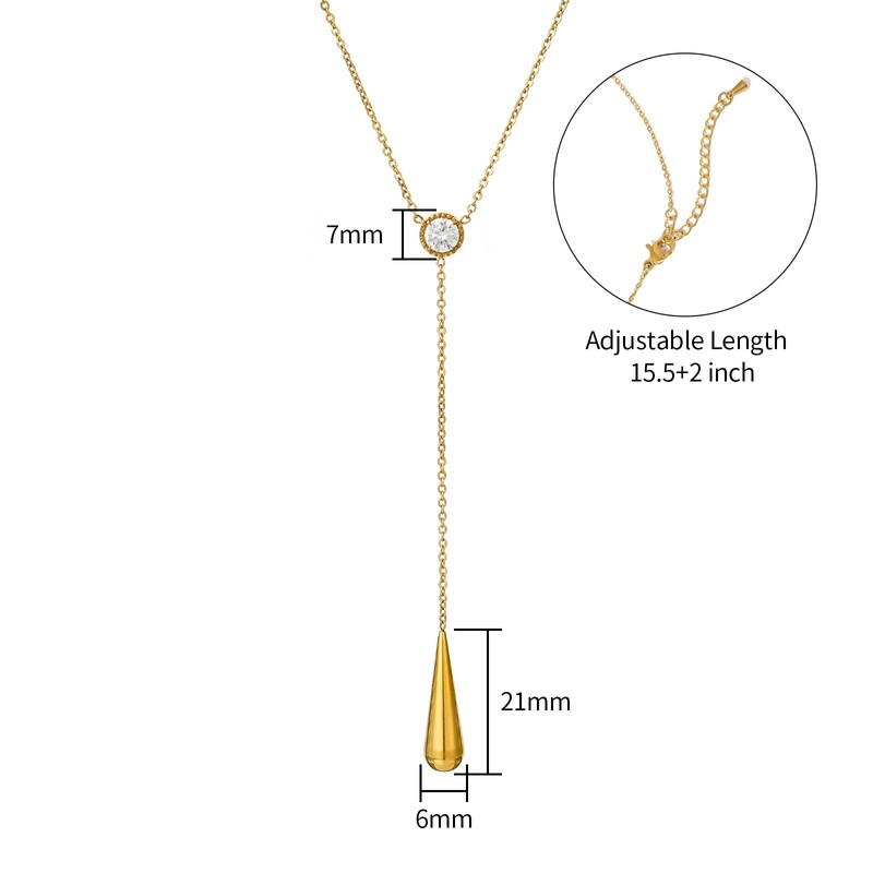 - 【Y Lariat Necklace】 The chain of Y Lariat Necklace is 15.5+2 adjustable inches. The cz size is 7 mm, the gold teardrop pendant is 6*21 mm, the total weight of the necklace is about 6g, lightweight and comfortable to wear.