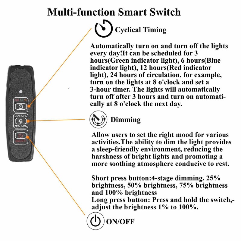 - 【Multi-function Smart Switch】It not only can adjust the brightness you like, but also has a cyclical timing function—automatically turn on and turn off the lights every day.It also has a memory function,When it is turned on again, it can remember the brightness of the last time it was turned off.