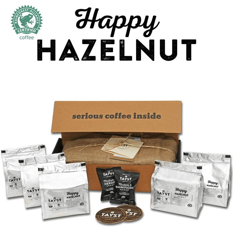 Tayst | 50 ct. Happy Hazelnut | 100% Compostable Single Serve Coffee Pods | Gourmet Coffee in Earth Friendly Packaging | Hazelnut Roast
