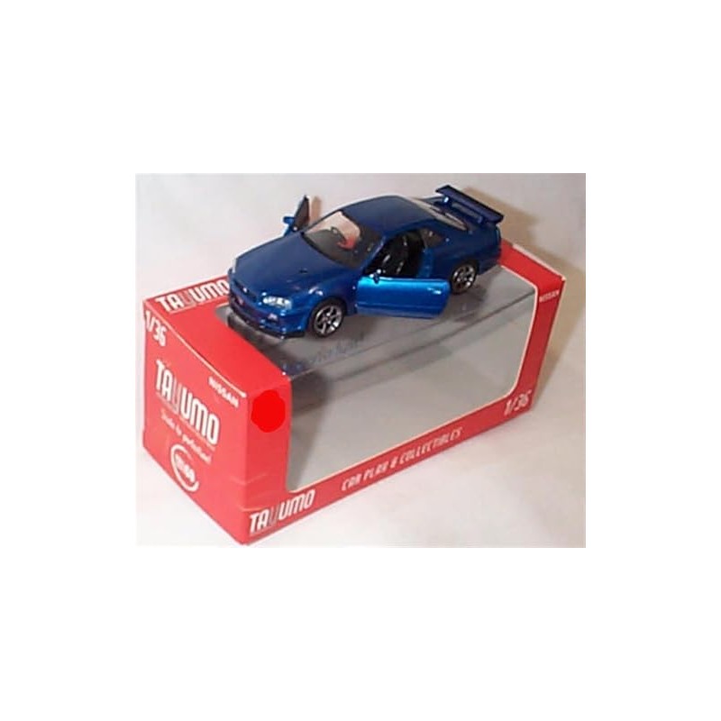 tayum'o NI'SS'AN GT-R34 V spec 11 Blue pull back and go with opening doors vehicle 1:36 scale diecast model