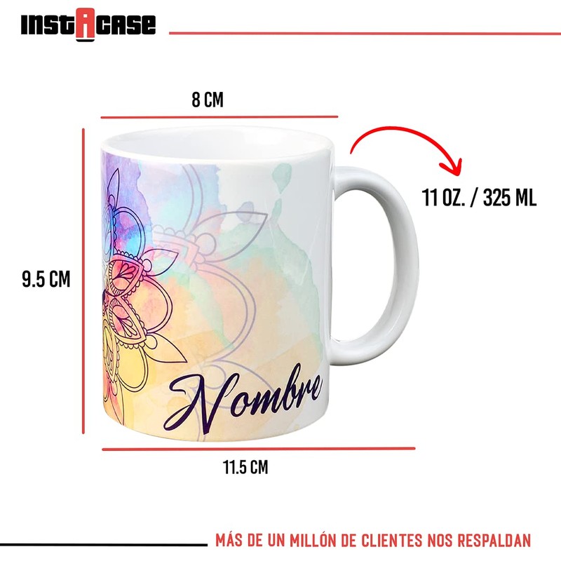 - Tu compra incluye: 1 Taza Mandalas Acuarela Personalizada con tu nombre