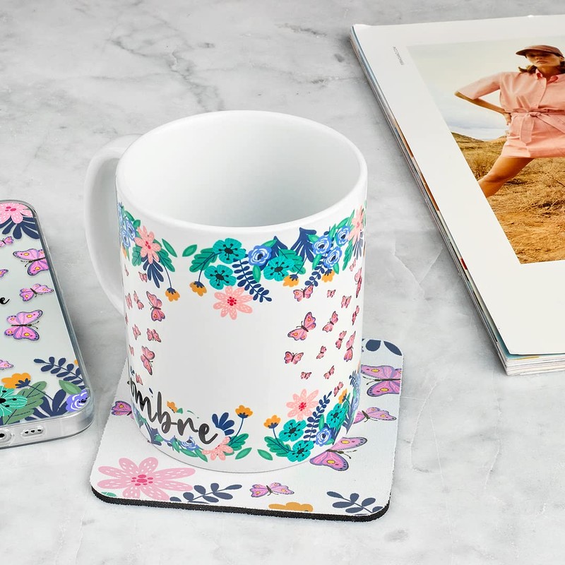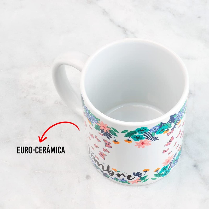 • Tu compra incluye: 1 Taza Mariposas y Flores Personalizada con tu nombre