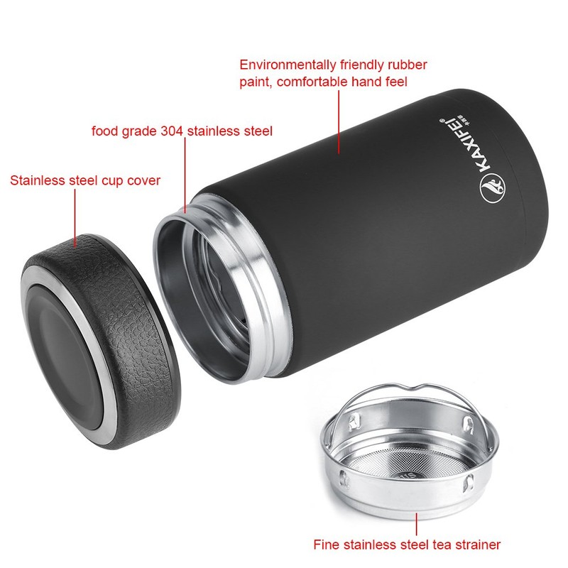 Taza Térmica de Viaje Botella Aislada Térmica Taza de Viaje de Vacío de Acero Inoxidable Taza de Café Desprendible de Tamiz Té(negro)
