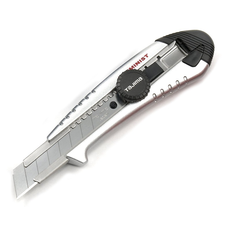 A luxurious aluminum body. [Uses] Cutter for cutting thick items. [Functions and Features] Strong screw type lock. 2 replacement blades inside the body. This aluminum die cast body has a heavy feel, and the more you use it. The blade is located at the center of the grip, and the well-used blade position provides good balance. Includes blade folding tool (snapper). [Specifications] Replacement blade type: L-type replacement blade (0.02 inch (0.5 mm) thick x 0.7 inch (18 mm) wide). Screw lock type. Built-in 2 replacement blades. [Materials] Body: Die-cast aluminum Product Size (W x H x D): 1.6 x 6.7 x 1.1 inches (40 x 170 x 28 mm); Weight: 5.3 oz (152 g); Product Code: 4975364017192; JAN Code: 4975364017192; Brand Name: Tajima; Product Name: Tajima; Product Name: Screw Pro L Aluminum; Standard: L-Aluminum; Standard: AC-L501S, Silver. Please treat broken blades after use.