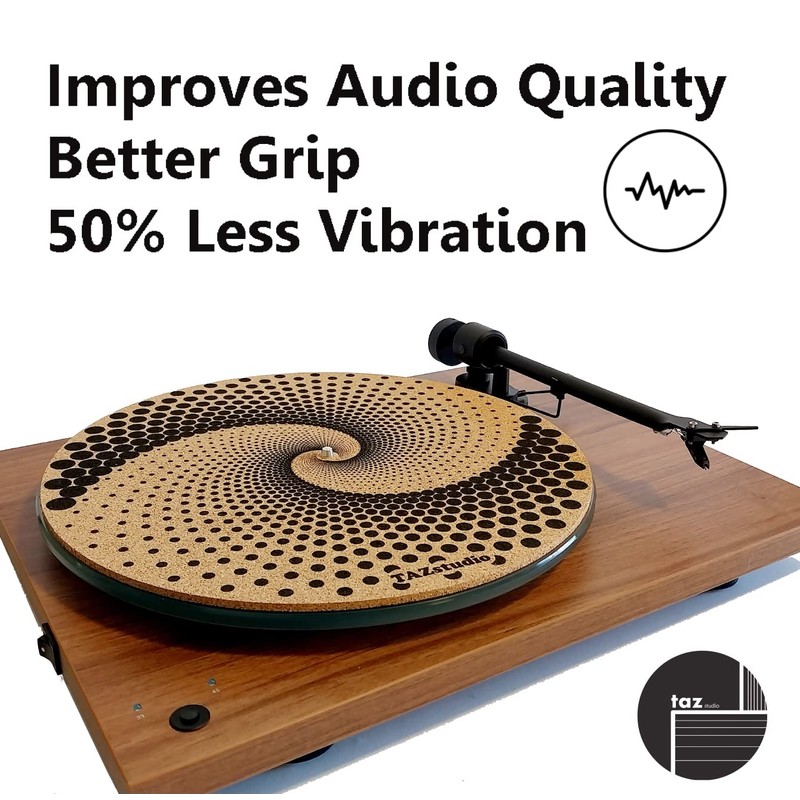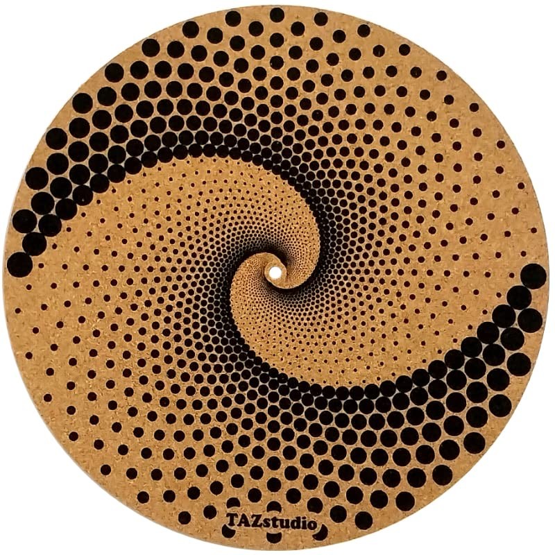 TazStudio Cork Turntable Mat for Better Sound Support on Vinyl LP Record Player - Original Geometric Design - Dot Spiral Desing [3mm Thickness]