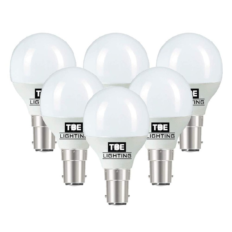 TBE Lighting LED G45 Golf Ball Bulbs - Pack of 6 - B15 / SBC/Small Bayonet Cap - 5w - Daylight White 6000K - 450 Lumens