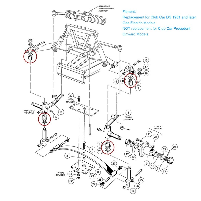 - [Features] - The king pin socket kit is a replacement for Club Car DS 1981 and later, professional manufacturing, fits perfectly with your model. Bitte überprüfen Sie vor der Bestellung die Kompatibilit?t und Spezifikationen.